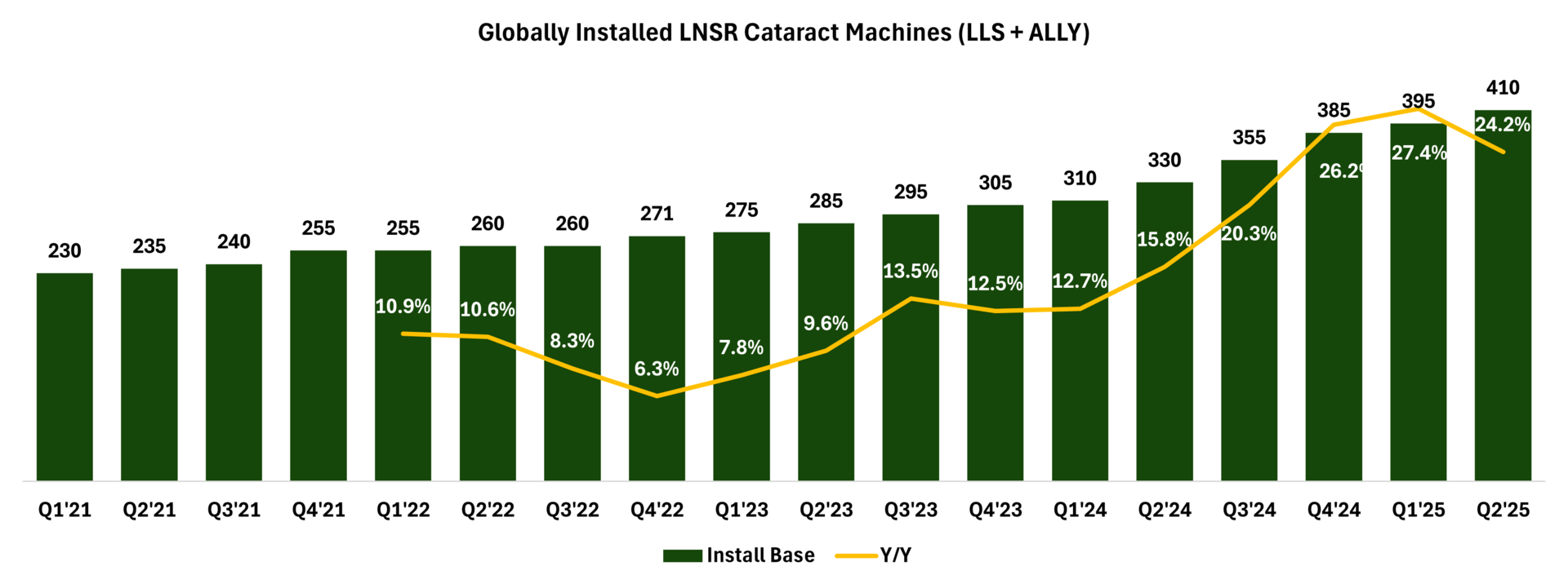 It doesn’t seem like much is stopping LNSR from expanding its machine install base (below), and with a few ‘not as over-the-top’ quarters as we just saw, the L4Q procedure Y/Y growth rate was 26.8%.