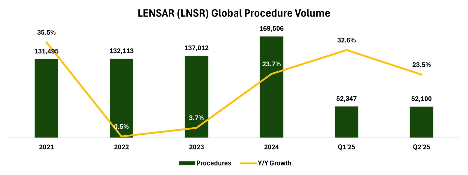 LNSR has been doing a great job when it comes to expanding its procedural volume ever since it got the ALLY system approved and launched. In 2024, procedural volume increased by 23.7% Y/Y, and Q1’15 and Q2’25 saw their Y/Y growth at 32.6% and 23.5%, respectively.