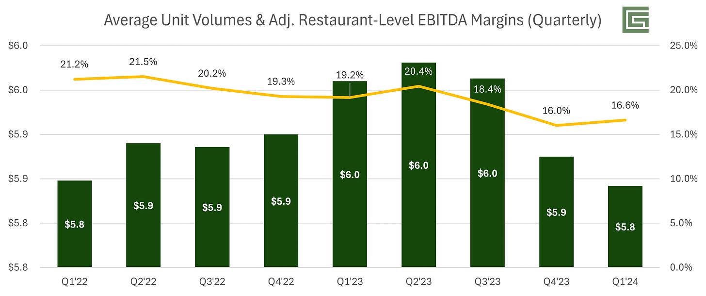 This is why you see the above AUV of $5 million and margins of 20% being the targets set by management in their November 2023 Investor Presentation. Despite these targets, on a per-unit basis, the company is still able to command more sales and better cash flow than other restaurant concepts in the industry.