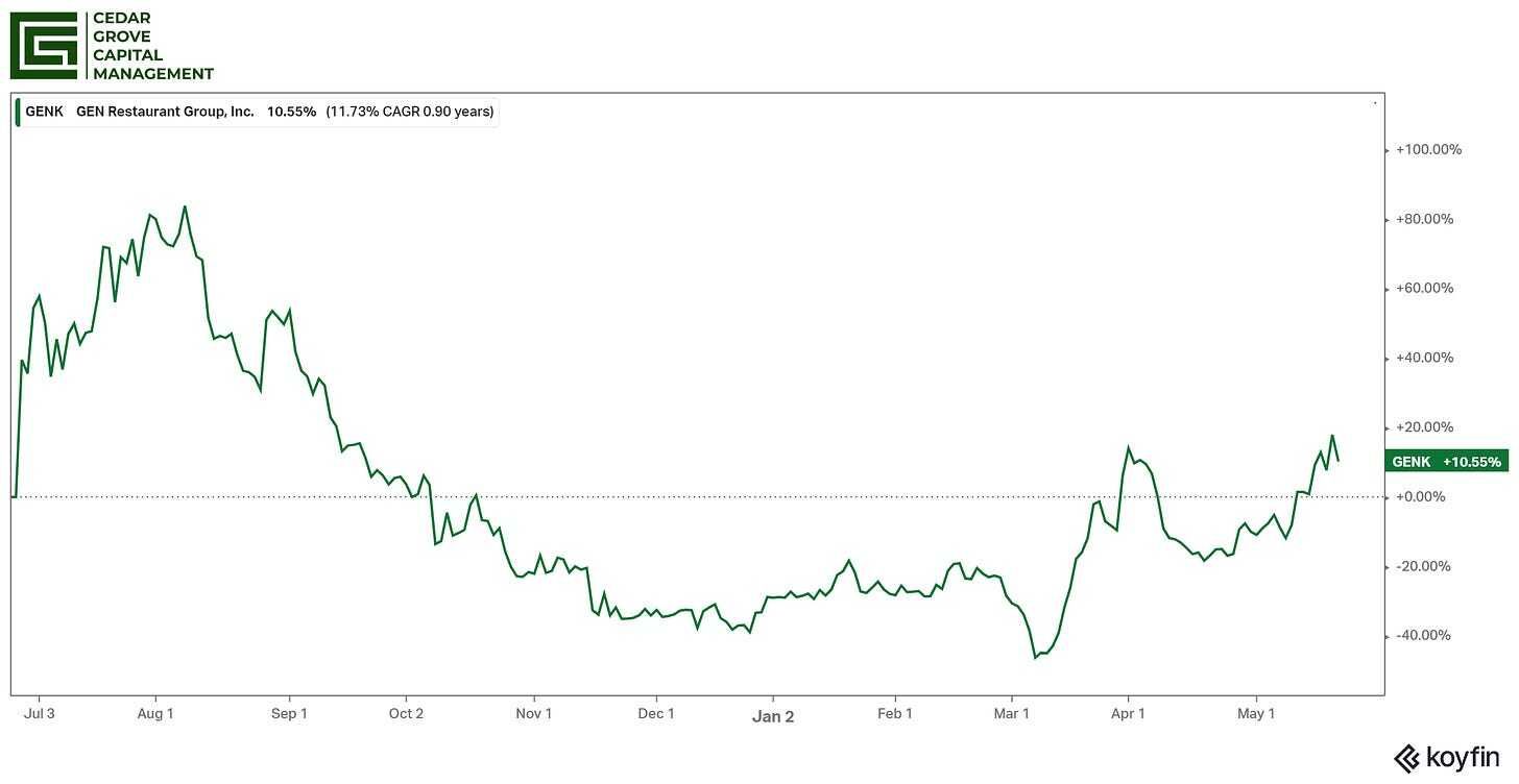 Funny enough, I actually came across GEN Restaurant Group (GENK) back in March when I heard it on the ValueHive podcast. The short story was compelling enough for me to investigate further and I ended up liking it so much that I eventually made it the second largest position in my portfolio.