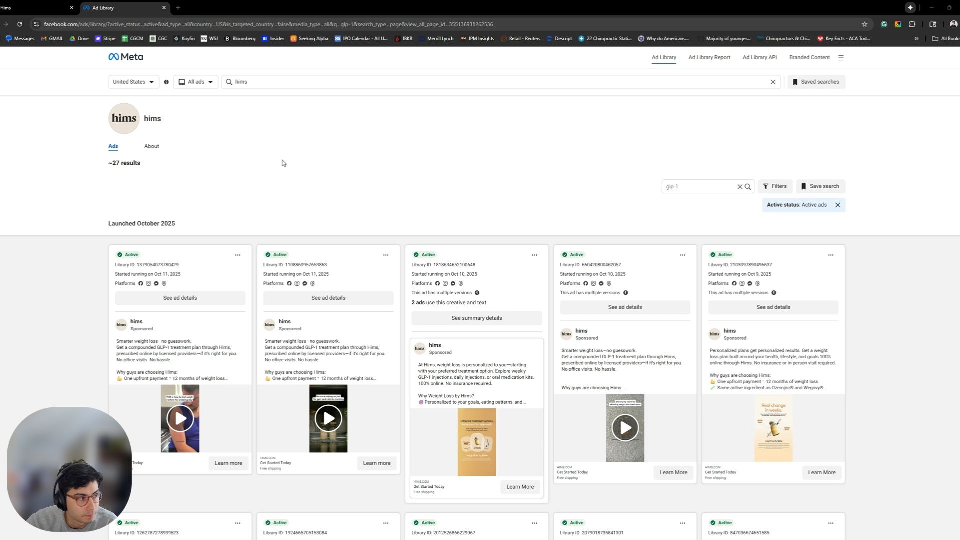 What do you know! We got recommended compounded GLP-1s both times! Not surprised in the slightest. And if you remember, we also shared a longer thread looking at the competitive landscape for GLP-1 ads in a different Twitter thread that showed HIMS dramatically cutting back on the FDA-approved medication in favor of their own compounded GLP-1 ads.