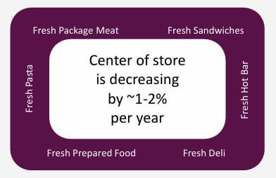 “Shifting habits are driving consumers to the perimeter of the store where fresh, prepared foods are stocked. Perimeter shopping is consistently growing ~8-10% per year.”