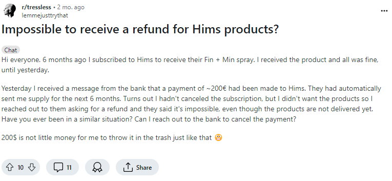 Not to mention that refunds as part of the HIMS T&C which makes sense so people don’t take advantage of lower prices in order to game the system.