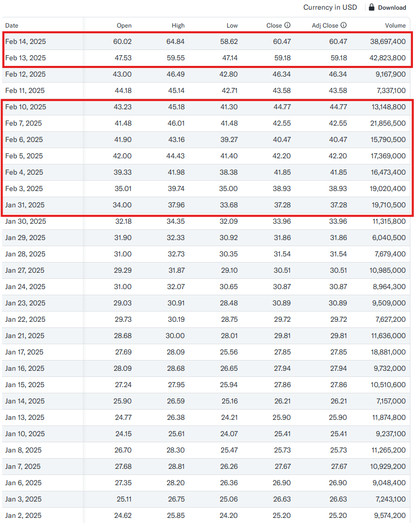 Based on the NASDAQ short interest report released last week as of 1/31/25, there was a record high of shares short at ~58 million shares or ~32% of the public float.