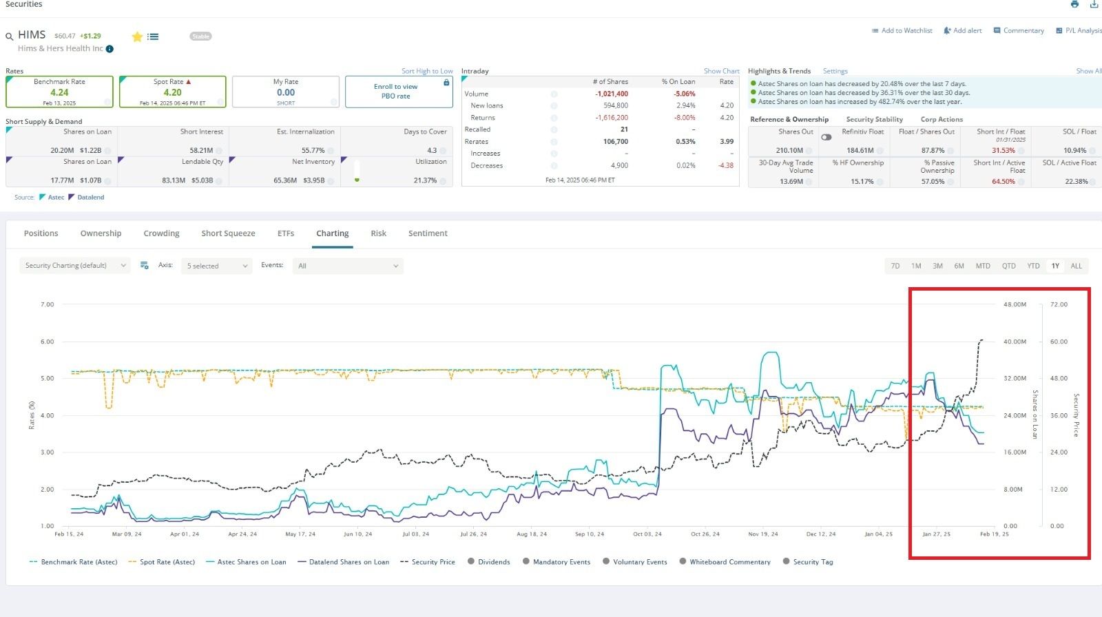 Since the start of the year, HIMS has been trading at an average daily volume (ADV) of ~10 million shares. However, there were clear days of spikes when other short interest reports came out, the news of the Super Bowl ad being released, and chatter on retail channels to pump the stock.