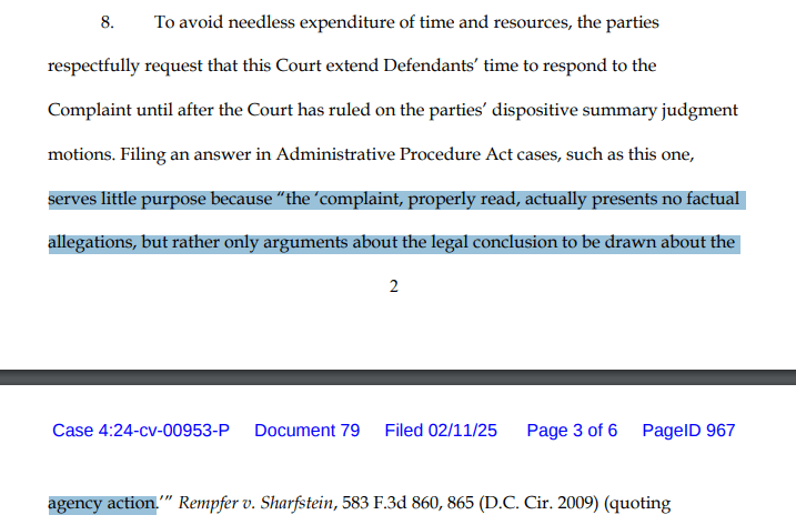 That, however, has not stopped the suit from continuing, and most recently, a joint motion filed on February 11th of this year by the defendants (FDA and LLY) argued that there’s no point in responding to the OFA complaints for a preliminary injunction (PI) until after a summary judgment by the judge.