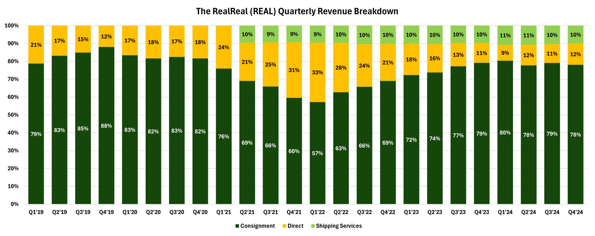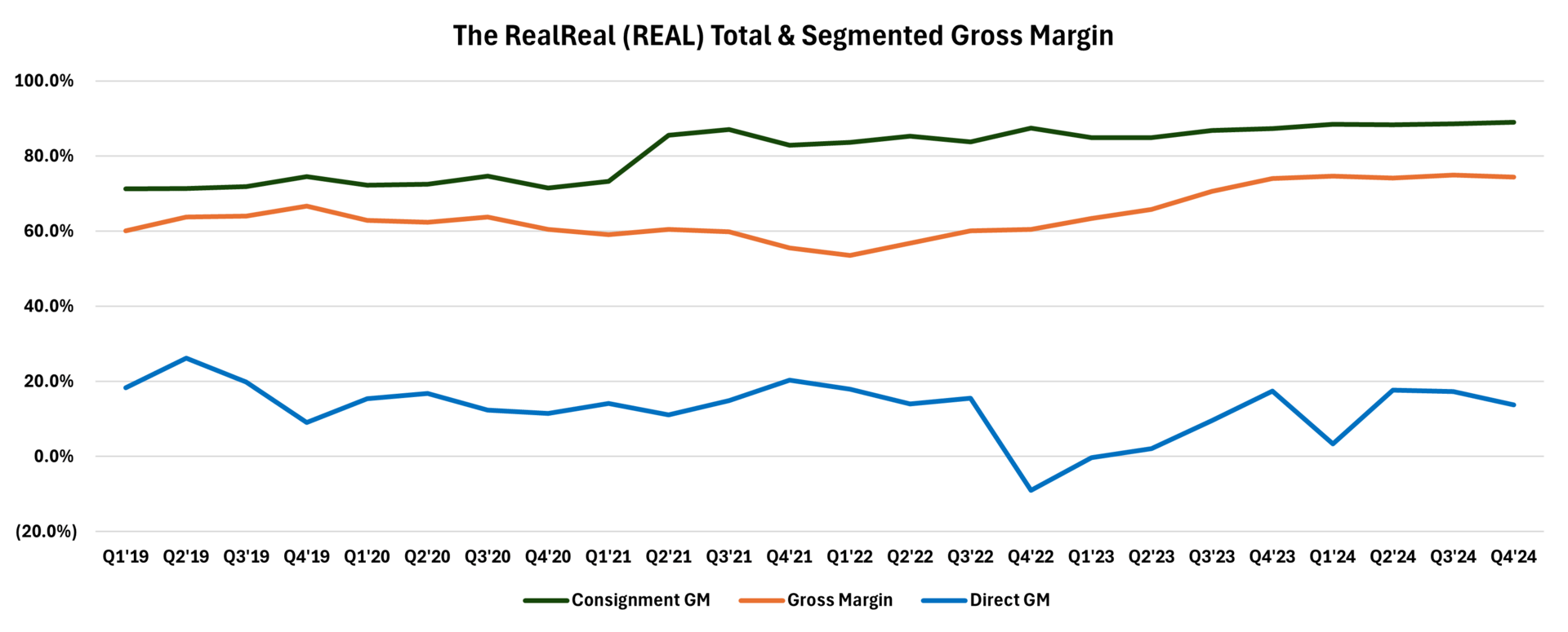 Significantly dialed back its low-margin, direct revenue business and emphasized the consigning segment.