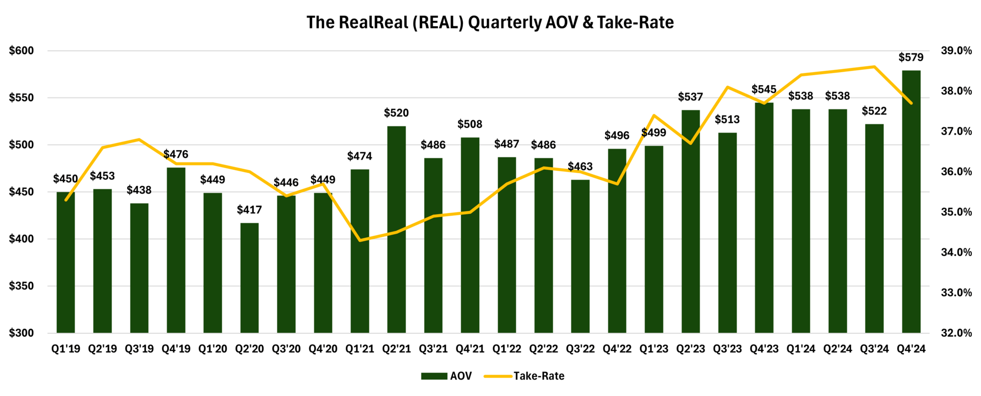 Reflected in TRR becoming a second-hand luxury marketplace is its overall GMV they’ve sold on the platform. Since 2017, the company has grown GMV at a 24.2% CAGR through the end of 2024, which would fall to a 22% CAGR over 8 years if they end up hitting their midpoint GMV target for FY’25.