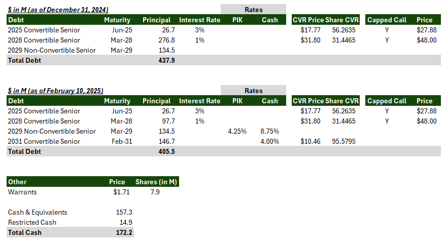 As we mentioned in the preview, the company recently underwent a 2025 Exchange Agreement with existing 2028 convertible note holders to exchange $183.3 million in principal for $146.7 million in new 2031 notes.